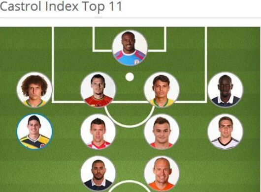 FIFA官方小组赛最佳阵容 梅西内马尔穆勒均缺席