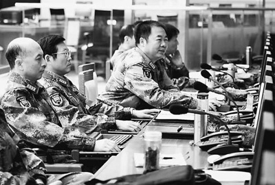 大屏幕上,陆海空联合作战,沉着迎击来犯之敌;计算机上,各要素实时显现,兵力调动紧张有序……轻触屏幕,战场一览无余;指尖游弋,指挥千军万马。数百名指挥员编组红蓝绿三方,依托网上共享态势图,搏杀在虚拟战场。