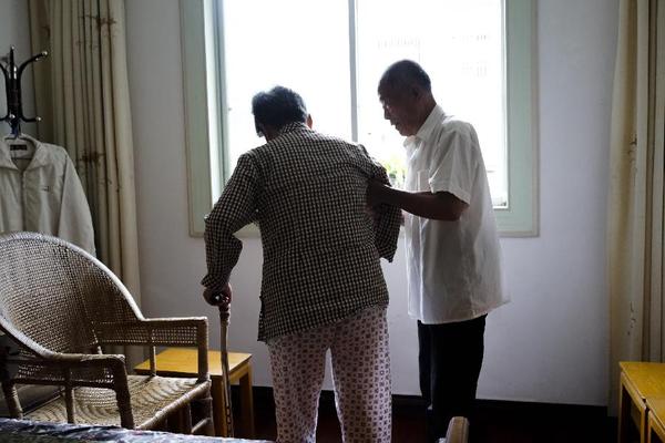 新华社照片,南京,2014年6月29日 七旬老汉悉心照顾5年令瘫痪妻子站立行走闵福全(左)帮妻子贾林林按摩手臂,以促进血液流通(6月26日摄)。妻子瘫痪前,70岁的闵福全是个标准的“大男人”,酱油瓶倒了也不会扶。5年前,妻子贾林林因脑溢血导致半身不遂。闵福全学着操持起所有家务。在他的悉心照料下,妻子现在已经能站立行走。新华社发(陈益宸摄)