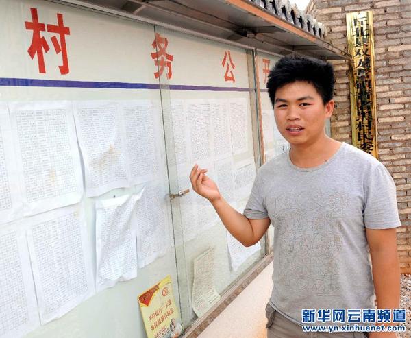 6月30日,在云南省丘北县双龙营镇,90后大学生村官代文超(中)在普者黑村罗明夫妇家走访。云南省丘北县双龙营镇普者黑村的大学生村官代文超,出生于1991年,2011年12月加入中国共产党,2013年从云南大理学院旅游管理专业毕业,同年9月在普者黑村担任村官。在村委会繁忙紧张的工作中,代文超向农民宣传惠农政策,与当地各族群众打成一片。代文超说,农村基层工作虽然繁琐,但锻炼了自己。新华社记者杨宗友摄