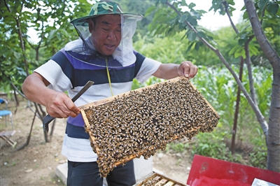 山花烂漫时节,“源头鱼”农家在后院里养了几箱蜜蜂。