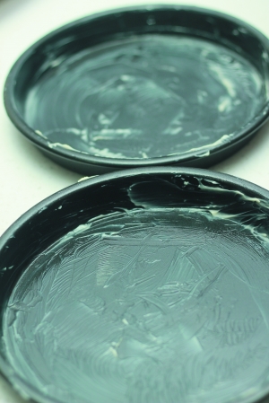 巧克力酱倒入烤盘之前,请用正常温度的黄油刷一遍烤盘(不能是化成液态的,否则蛋糕拿不下来)。
