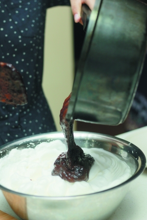 过程中放入一或两大勺鲜奶油,过程用小火,要不停的搅拌,不然会粘锅哦。