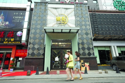 6月30日,昔日的夜明星KTV暂停营业说明贴在了位于长沙市芙蓉中路华侨国际大厦的乐点KTV大门上。记者 唐俊 摄