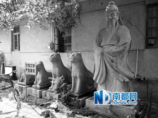 乍一看到“博物馆前石像生”的字样,或很容易让人联想到《长恨歌》里的“回眸一笑百媚生”。其实,笔者要说的“石像生”,是指那些矗立在墓葬前神道两侧的石人和石兽,与“百媚生”不是一回事。具体到“博物馆前石像生”,则是指如今还摆放在博罗老博物馆院子两侧的那一对石人、半对石羊、半对石马和一对石虎。这一批石像生可不是等闲之物。就拿那一对石人来说吧,身高均达2.6米,肩宽近1米,身着明朝服饰,堪称巨人。北侧的那一位,两只手笼在袖里,是一位文官。南侧的那一位,两手拄剑,应该是一位武官。石羊身高1.15米,体长约1米。所谓的半对石羊,其实表达得不太准确,应该是完整的石羊1只+去头石羊1只。倒是身高1.6米,体长1.2米的半对石马,说得贴切。本来这对石马是有牡有牝的,如今居然“跑”了一匹。依常理推断,剩下的这匹应该是牡马,牝马则可能攀高枝去了。还是那对石虎表现最佳,多少年了,仍不离不弃,忠实地守护着这个院子,不管是谁进来,都怒目圆睁,平易近人……