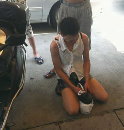 原标题:男子扮女装入泳池女更衣室偷窥 被抓下跪求饶(图)