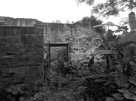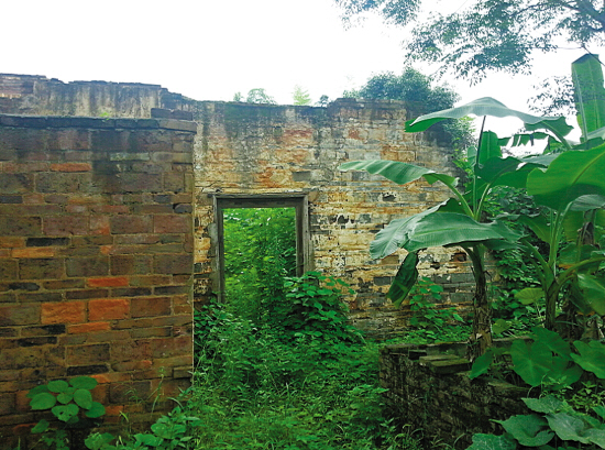 岁月长河里,古老香樟树和三星坪码头逐渐失去了昔日光辉。距老树和码头二三十米远的三星坪村里,若非村民指引,毛竹、芭蕉和杂草掩映的一片青砖垒砌的墙壁很难引起人们的注意。这座式样普通的当地常见民宅,大部分都已倒塌,连房顶也荡然无存,只剩下长满青苔的残垣断壁,立于丛生的杂草堆中。