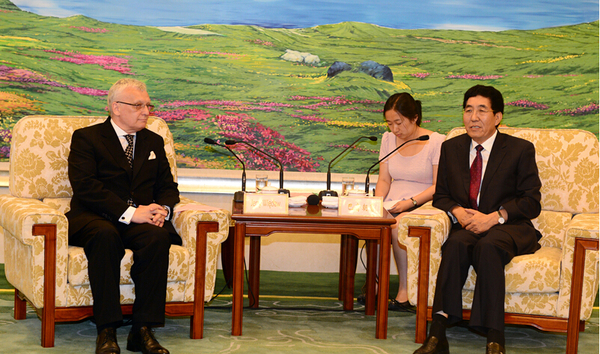 7月8日,省长巴音朝鲁在长春会见第九届欧洲外交官研讨班嘉宾。本报记者 焦淑满 摄