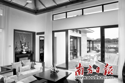 这里拥有108栋独立泳池别墅和110间豪华客房,每套均设有独立泳池、按摩池、户外SPA按摩凉亭,推开独立院门,通明透亮的落地玻璃幕墙将园林美景一一收入眼底。湖岸、高尔夫球场衬映下,风格独特的东南亚园林更显椰影婆娑、温馨别致。别墅内部设计精致典雅,将现代设施与本地风情完美融合。110间位于主楼的豪华客房设计现代,配置齐全,首层花园泳池房更能从房间阳台直接跃入泳池中,舒适而惬意。