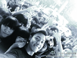 ▲《古剑奇谭》让陈伟霆人气大涨,他日前到广州宣传吸引大量粉丝合照,还有接机的粉丝贴心送上零食包。