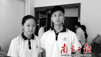 2014年广东高考成绩已公布,汕尾陆丰市龙山中学一对兄妹近日成了新闻人物,两人在美术类高考中均取得了优异的成绩,其中哥哥郑炜升(右)以文化科581分、术科538分,妹妹郑炜珊(左)以文化科568分、术科573.5分双双被清华大学录取。