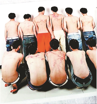 一张由学生提供的照片显示,11名学生的肩、背上,呈现多处纵横交错的血条