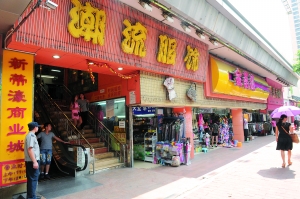 在中山三路中华广场西侧有一个商业城,这里商品琳琅满目,包括衣服、鞋子、手表、食品等,价格低廉,与中华广场内的高大上的H&M、COZZI、CITY CHAIN等知名品牌形成鲜明对比。这里就是老广口中的另一条“老鼠街”,其正式名字为“金凯商业城”和“金帝濠商业城”。很多街坊叫不上商业城的名字,但一说“老鼠街”,却能马上指出地址。