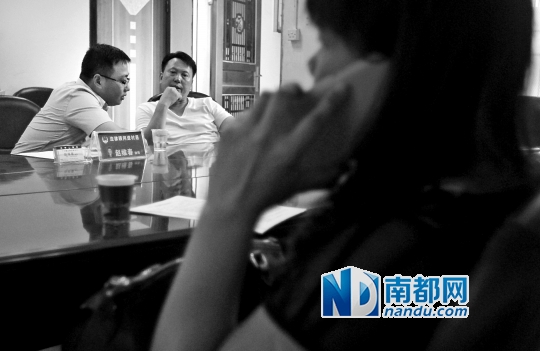7月11日,赵维春(左)在白蕉镇参与纠纷调解。