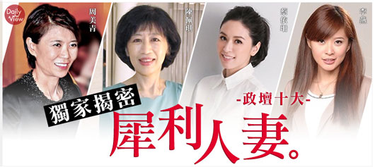 台湾政坛"十大犀利人妻":周美青勇夺冠军 蔡依珊亚军