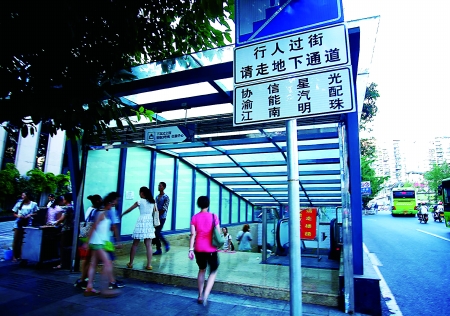 地下通道出入口均有指示标志 记者 李化 摄