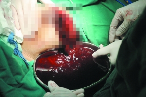 “去年我们所接触到的乳癌奥美定患者还没切除肿瘤,所以我们建议她去肿瘤医院进行治疗。而徐蕾已经在美国进行了肿瘤切除,但是美国医师从来没有取过奥美定,拿不准的情况下,就让她回国医治。”黄广香教授告诉记者,肿瘤切除后,令美国医师也想不到的是,奥美定是一种亲水性非常强的丰胸材料。不到一个月,切除肿瘤后的渗水已经和奥美定融为一体,并不断膨胀,导致胸部大如篮球,犹如一个定时炸弹般,随时面临爆破的可能。
