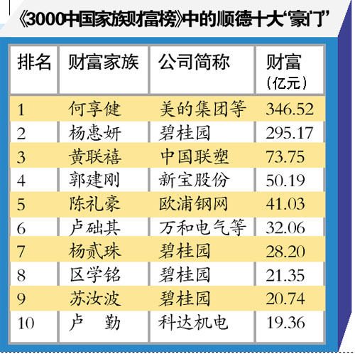 《3000中国家族财富榜》出炉 顺德19家族入围