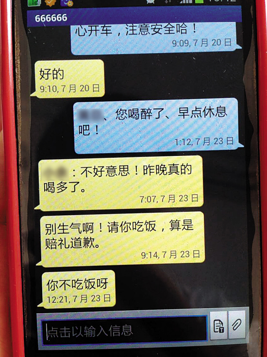 次日早上,黄某向小琴发来道歉短信,称自己昨晚喝多了,请她吃饭赔礼道歉。