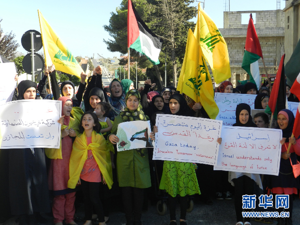 7月24日,“耶路撒冷日”前夕,一些黎巴嫩和旅居黎巴嫩的巴勒斯坦妇女和儿童来到以色列在黎以边界建立的隔离墙前,举行示威活动,抗议以色列侵略加沙和杀害巴勒斯坦无辜平民,声援加沙巴勒斯坦人反抗以色列侵略的斗争。