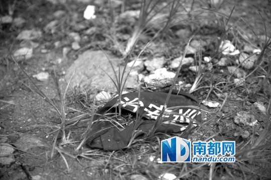 昨日,离案发现场几米远的地上,留有一块联防队员的袖章。 南都记者 陈文才 摄