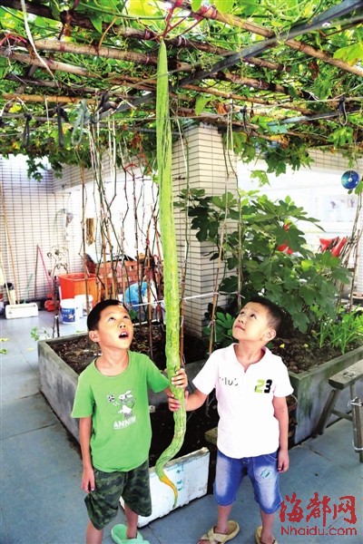 肖老伯说,自家的“蛇瓜”一共有两根,是自己今年4月份种下的,没想到,三个月就能长这么长。“蛇瓜”成熟后,肖老伯的天台也成了小区一景,不少邻居到他家里观赏。