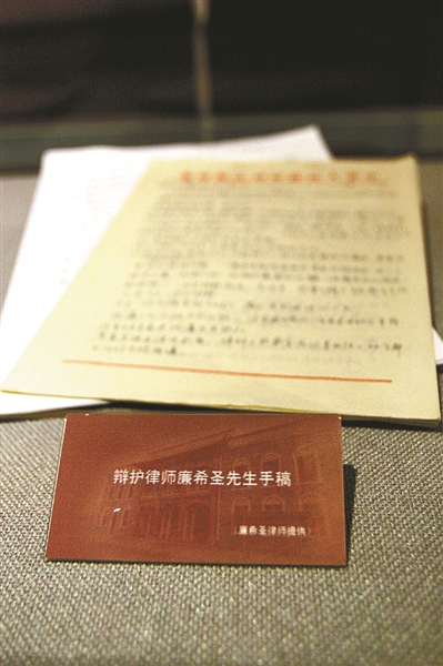 为日本战犯辩护的廉希圣先生手稿 摄影/本报记者 倪家宁