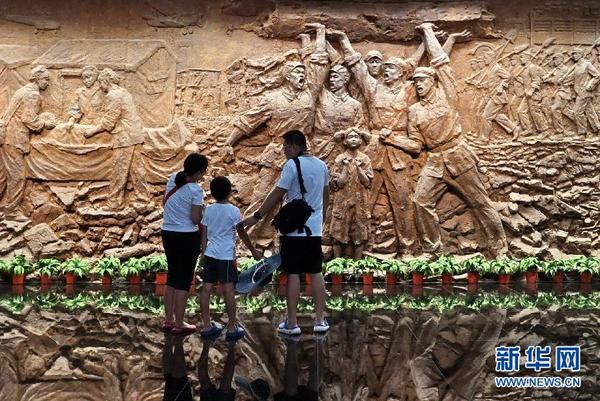 新华社照片,唐山(河北),2014年7月28日 唐山大地震38周年 市民“哭墙”前祭亲人 7月27日,在抗震浮雕前,父母向孩子讲述当年“一方有难、八方支援”的抗震故事。 7月28日是唐山大地震38周年。这天前后,河北唐山市民来到唐山地震遗址纪念公园,在刻满24万死者名字的纪念墙前献上鲜花,祭奠在地震中遇难的亲人。 1976年7月28日,唐山发生7.8级强烈地震,波及天津、北京,共遇难24.2万多人,重伤16.4万多人。 新华社记者 李俊义 摄