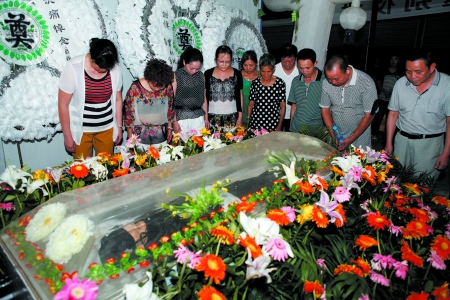 昨晚,垫江桂溪镇盛国玉的遗体送别现场,余琼含泪向记者回忆了母亲。