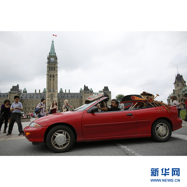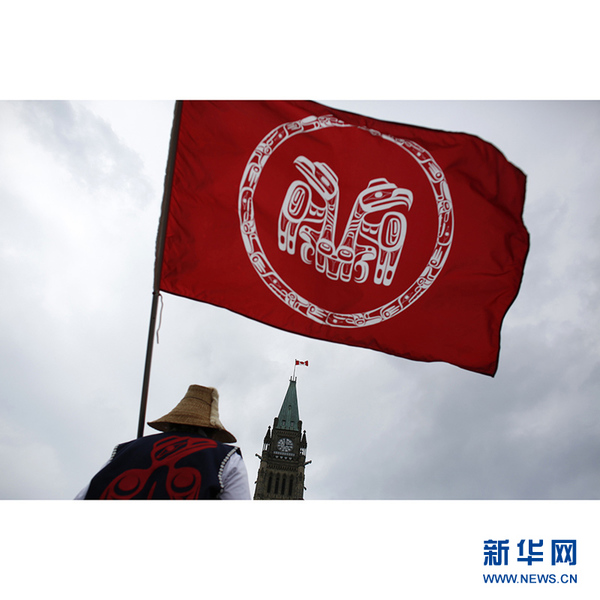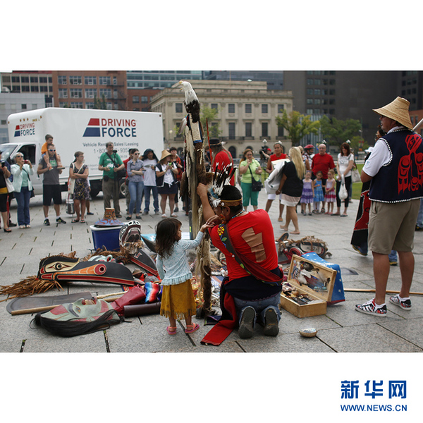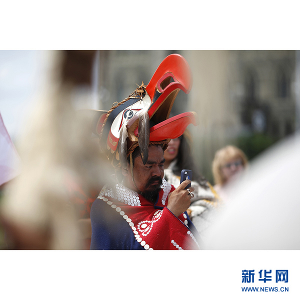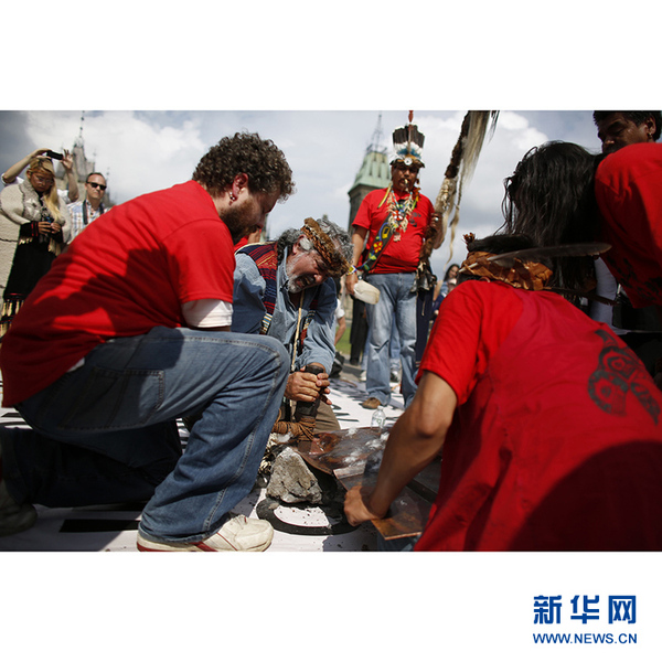 加拿大“第一民族”即土著人,从7月1日开始从加拿大西部经过长途跋涉,其中很多人是经过5000多公里的风尘仆仆,于28日抵达首都渥太华国会前,举行切割铜盾的“羞辱仪式”(shaming ceremony),象征打破财富和权力,要求加拿大联邦政府修复与原著民破碎的关系。