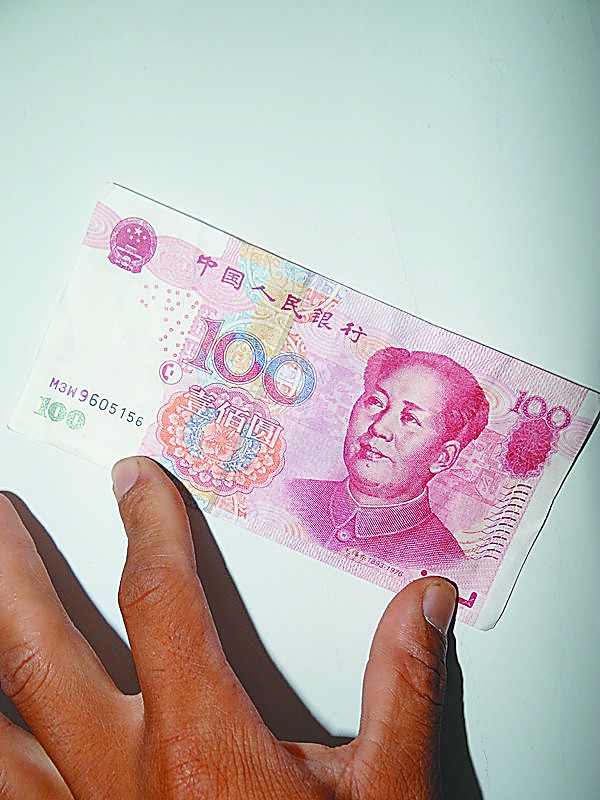 民警查验这张冠号为“M3W9”的假币,发现面料、手感和抖动发出的声音几乎可以乱真,正面印刷与真币也无明显不同之处,连水印都清晰可见。但是,该币的反面制作却相对粗糙,“中国人民银行”汉语拼音下的藏文、维吾尔文、蒙古文、壮文有些模糊,尤其是维吾尔文和上方的拼音发生了重叠。另外,“M3W9”假币的长度较真币略短,防伪线也是印刷上去的,水印背光并不反光,标识处凹凸感也不明显。