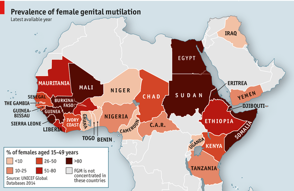 据《经济学人》杂志网站报道,首先是好消息:联合国儿童基金会(UNICEF)于7月22日发布的一项报告显示,全球被迫接受割礼的女孩人数相比30年前减少了大约三分之一。而悲剧的是:平均每分钟仍有7个女孩被强制进行生殖器切除,而且这个陋习的减少速度不及被迫接受割礼女孩的增长数量。除非加快终究女性割礼进展,否则到2035年遭受残害的女性数量将从现在每年的360万增长到410万。