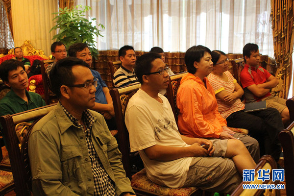由中国新闻摄影学会、新华社广东分社、佛山市南海区西樵镇委镇政府共同举办的“美丽中国·寻找美丽乡村”摄影大展活动7月18日正式启动。按活动计划,新华社广东分社于7月29日至7月31日组织新华社签约摄影师到佛山市南海区西樵镇走进乡村进行采访拍摄,定格美好乡情瞬间。图为新华社广东分社摄影记者刘大伟与摄影师们共同分享巴西世界杯拍摄经验。
