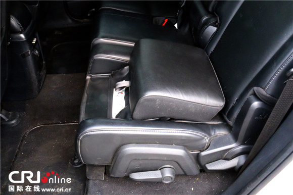 搬动第二排座椅把手,座椅可向前移动,便于进入第三排座椅乘坐,第三排座椅空间较小。