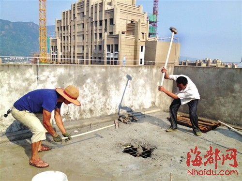 海都讯 原本就是顶层的两层复式楼,一些业主却“因地制宜”,打通自家楼顶,封锁公用消防通道,并在楼顶违法建设两层。昨日,在刚交房不久的福州保利香槟小区33栋楼顶上,晋安区市容局派出执法人员,对200多平方米违建实施强制拆除。