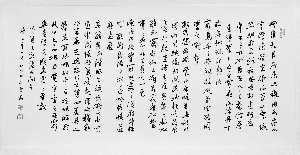 我们且将小兵书法一幅幅细细读去,看似章法布局并不经意,实则错落有致。墨韵浓淡匀称,柔中带刚,有一种自然的流泻,且有一种强烈的节奏感和疏密紧凑的艺术效果。其时有楷书之规范,时有行书之轻松,字里行间虚实得体,字形大小、长短、疏密有致,线条粗细交出,一派飘逸脱俗,朴拙中见精功,线条凝练遒劲,一切都是那么自如。笔墨湿涩自然,错落参差,开开合合,虚虚实实,给人以一气呵成的酣畅。字里行间蕴藉的是一种散淡冲和、含蓄之态。小兵书法表现出平和简静的意境,反映了古人所谓“志气和平,不激不厉”的风度。