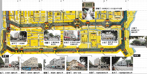按照著名学者陈代光先生在《广州城市发展史》中的考证,记者绕着原广州城南城走了半圈,定位了五座城门的位置:南城八门: