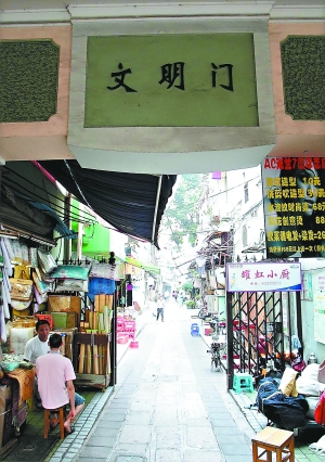小南门(又称定海门):现德政路与文明路交界处。从前小南门往北可通向番禺学宫(今农讲所),小南门东门处便是广东贡院。