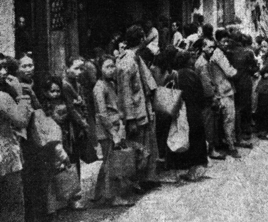 8月20日,市府规定,本市非商人或非本业商人购买消费物品,不得超过每人三个月的需要量,如属本业商人经营的物品不得超过每年需要量的四分之一;各地厂商储存的货品,如不尽量供应市场,以居奇论处。尽管政府有令,但商人对限价颇为抵触,皆因无利可图。商人囤积货物,市面的东西买少见少,“抢购”一词常挂广州人嘴边。有《主妇吟》一诗说:“轮完猪肉又轮粮,阵摆长蛇几丈长。轮得粮来又天黑,家中儿女饿瘵肠。”此时的广州人已经习惯了排长龙,买米、买肉、领配粮证、买恤衫、买奖券……。有《买米》诗云:“辛勤轮米不盈筐,排队街头长又长。出了银纸还受苦,话说金融泪两行。”