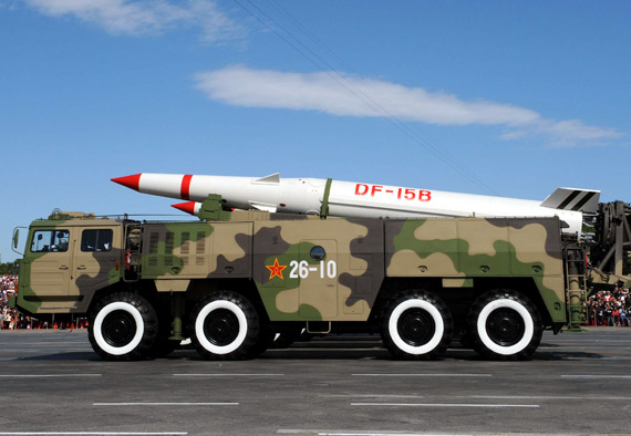 东风-15(北约代号CSS-6)型导弹:射程600公里左右,可搭载多种战术弹头,1990年服役。目前是解放军短程弹道导弹的“主力军”。