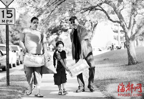 当地市民全家出动抢购瓶装饮用水
