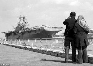 2007年,一对夫妇观看美国军舰通过苏伊士运河