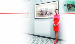 2013年9月,朱玲玲在她的摄影作品前留影。
