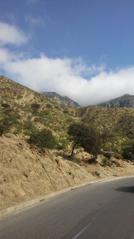 来到阿斯马拉的东北郊区,雾气越来越重,但你渐渐体会到这其实不是雾,而是云。俯身向下看去,忽然发现你正在断崖之上,你身下是万丈深渊,笔直而下。直观的感受告诉你,这就是埃塞俄比亚高原的边缘,从这里开始,在到达厄立特里亚第二大城市、位于红海之滨的马萨瓦的70公里直线距离内,海拔高度从2400米骤降到0米。