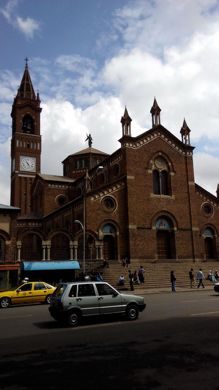 意大利人到这里之前,阿斯马拉只是数个土著部落的聚居地,意大利人在19世纪末开始建造这座城市,并在20世纪30年代迎来了建设高潮。棕红色的阿斯马拉天主大教堂自1922年开始雄伟的矗立在市中心,52米高的哥特式钟楼至今都是全市的最高建筑物,在阿斯马拉的任何一个角落都可以看到它,是当之无愧的地标。