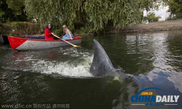 伦敦公园湖中惊现“大白鲨” 吓傻划船游客