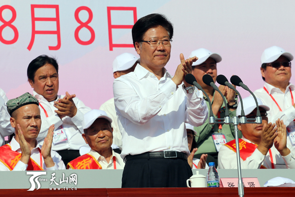 天山网克拉玛依讯(新疆日报记者井波 董亮 天山网记者杨若莎 张新军 刘宽 何立佳摄影报道)“我宣布,新疆维吾尔自治区第十三届运动会开幕!”8月8日上午,自治区第十三届运动会在克拉玛依市开幕。中共中央政治局委员、自治区党委书记张春贤宣布运动会开幕。自治区党委副书记、自治区主席努尔·白克力在开幕式上致辞。