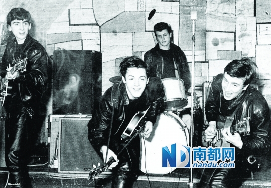 当年,爱泼斯坦由音乐杂志《MerseyB eat》的记者比尔·哈利安排,像图中观众那样挤在人堆里观看披头士的演出。而早期披头士并不穿西服打领带,他们穿的是牛仔裤和皮夹克,他们在台上随意抽烟、吃东西,毫无征兆地中断某一首歌,又随心所欲地开始下一首,装作打成一团,甚至还背对观众。