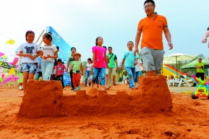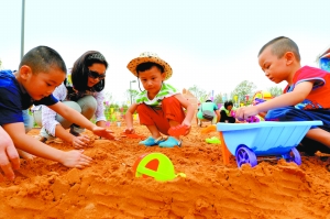 “快来一起玩沙子!” 本版照片由本报首席记者 裴强 摄