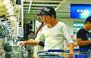 两人逛家庭用品区,被疑同居,为爱巢选东西。